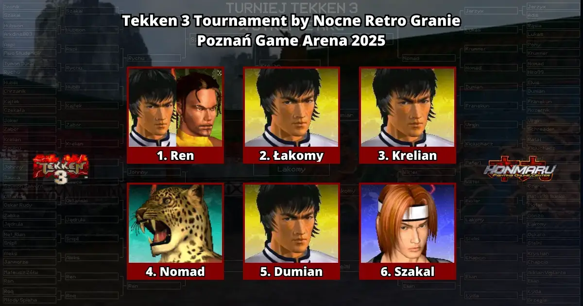 Group photo after the Tekken 3 tournament at PGA 2025 in the NRG zone. Source: Nocne Retro Granie.Full tournament bracket from the Tekken 3 by NRG tournament at PGA 2025.